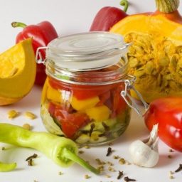 Салат с тыквой и сладким перцем в ароматном маринаде, приправленном корицей, кориандром и чесноком, – хрустящее овощное ассорти, которое лучше всего заготавливать в сентябре – октябре.