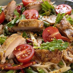 Вместо всем давно знакомого Оливье на праздничный стол лучше будет поставить новый и очень оригинальный салат. В его основе тонкая лапша фунчоза, и немного курицы: вместе эти ингредиенты идеально дополнят друг друга.