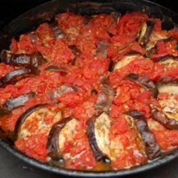 Очень простотое, но вкусное и сытное блюдо из баклажан с фаршем и помидорами.