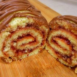Рецепт бисквитного рулета с кремом который можно приготовить всего за 30 минут. Не нужно ожидать когда он пропитается. Как только бисквит остынет, можно смазывать кремом и нарезать. Сочный бисквит на основе заварного теста не нуждается в пропитке, он достаточно нежный сам по себе.