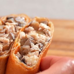 Идеальные блинчики с начинкой всегда должны готовиться на тончайшем тесте. Мы покажем, как сделать блины, которые просто тают во рту, и ароматную начинку из грибов и курицы. Здесь будет и соус, и овощи, и мясо. Необычный формат удобно подавать не только на обед, таким блинчикам найдется место и на праздничном столе.