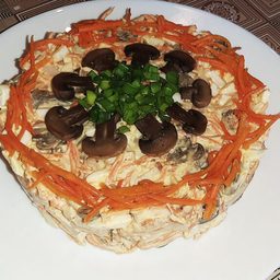 Салат с копченой курицей, грибами и морковью по-корейски