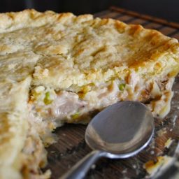 Мягчайшая курятина с овощами, тушенная в нежнейшей молочной подливке и затем запеченная под слоем рассыпчатого, слоистого, золотистого песочного теста! Не особенно элегантно, но очень, просто невероятно душевно. Очень рекомендуется для простых ужинов в кругу семьи!