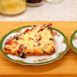 Домашняя "пицца" на хлебном тесте, на сковороде (без духовки)