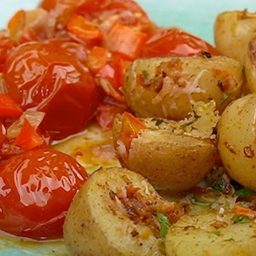 Этот картофель делается с луком и морковью, с отдельной порцией обжаренных помидоров черри. Поверьте, теперь картофель приготовленный таким образом будут просить каждый день, а про обычную картошку забудут.