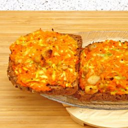 Горячие бутерброды с мясом, кабачком, морковкой, сыром и зернистой горчицей