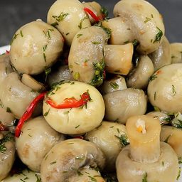 Обычно грибы маринуются долго, но наш рецепт — приятное исключение. Благодаря особому маринаду, с минимальным количеством воды, шампиньоны быстрее пропитываются всеми нужными специями, одновременно не теряя текстуры и оставаясь упругими.