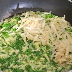 Лучше надоевшей яичницы. Соединяем тертый картофель и зелень на одной сковороде