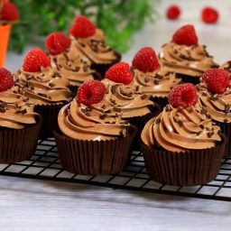 Шоколадно-кофейные капкейки с малиновым конфи