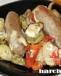 Купаты, запеченные с овощами