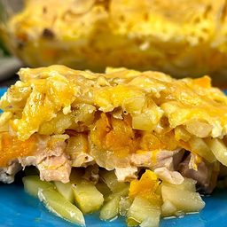 Курица и картофель кажутся привычным сочетанием, но в этом рецепте они раскрываются по-новому. Сначала мясо слегка маринуется, затем собирается в форме слоями с овощами и картофелем, а сверху покрывается сыром. Во время запекания все ингредиенты пропитываются соками и специями, и получается ароматная, сытная и красивая запеканка, которая соберет всю семью за столом. ...