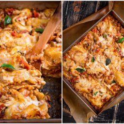 Лазанья — один из самых популярных рецептов итальянской кухни, запеканка из листов пасты с красным соусом из фарша (болоньезе) и белым соусом (бешамель).