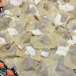 Пельмени с грибами в сметане