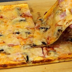 Хрустящая корочка, тягучий сыр и насыщенный вкус начинки позволят поставить домашнюю пиццу в центр любого, даже самого богатого стола. Тесто на кефире готовится за пару минут без дрожжей, сама пицца запекается не более 20 минут, начинки можно подбирать любые, каждый раз получая почти новое блюдо.