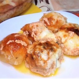 Картофельные биточки с колбасой и сыром